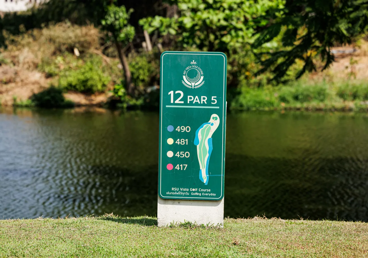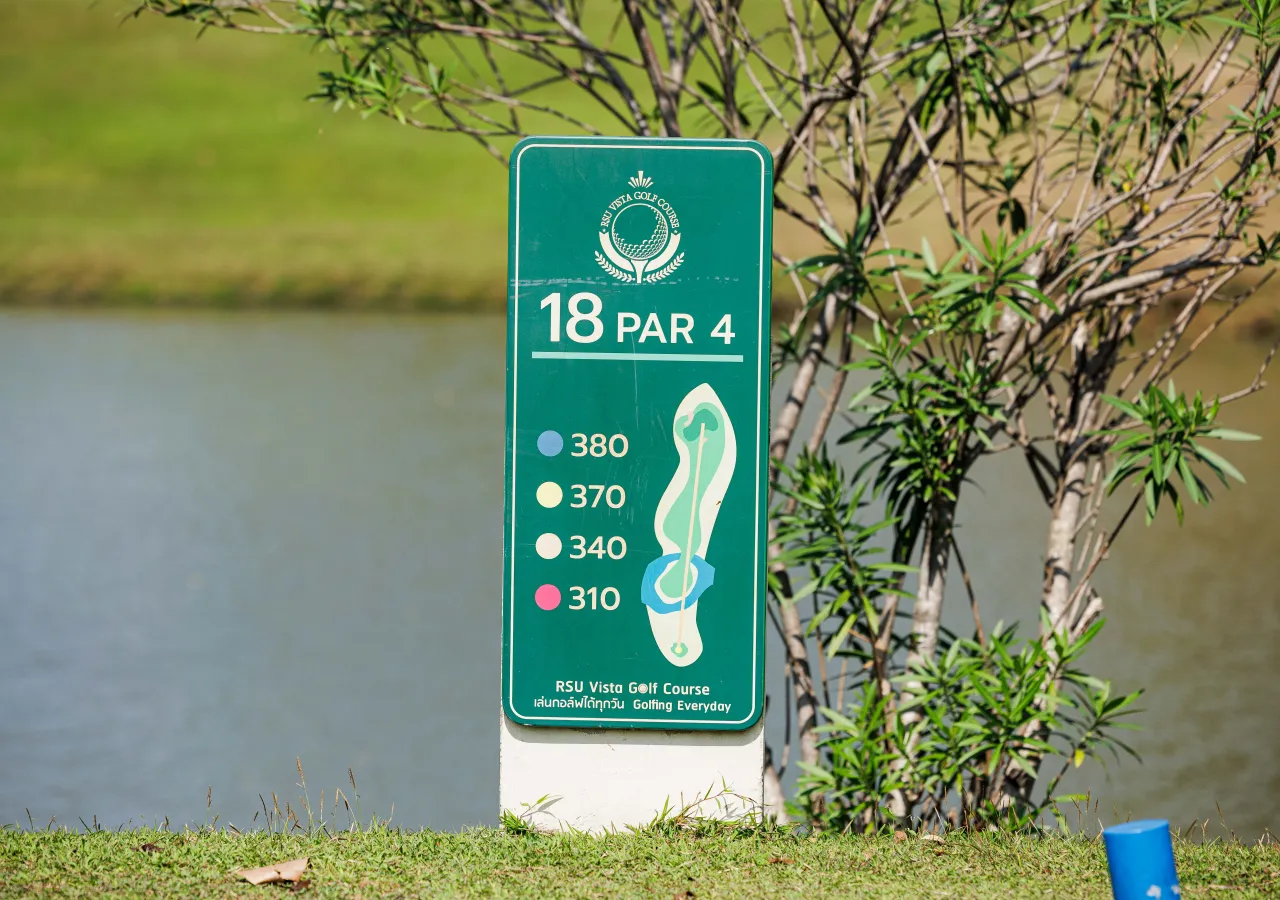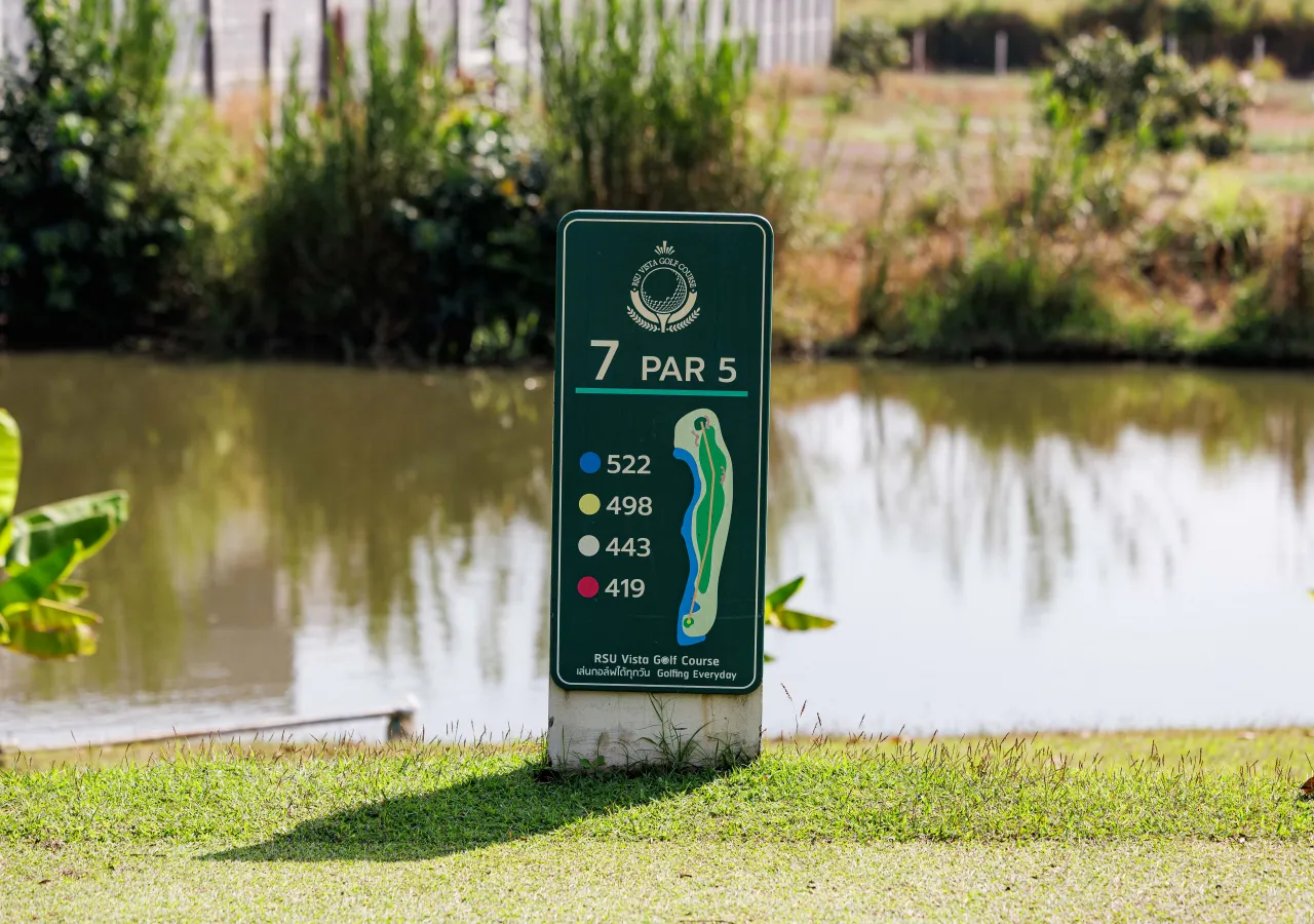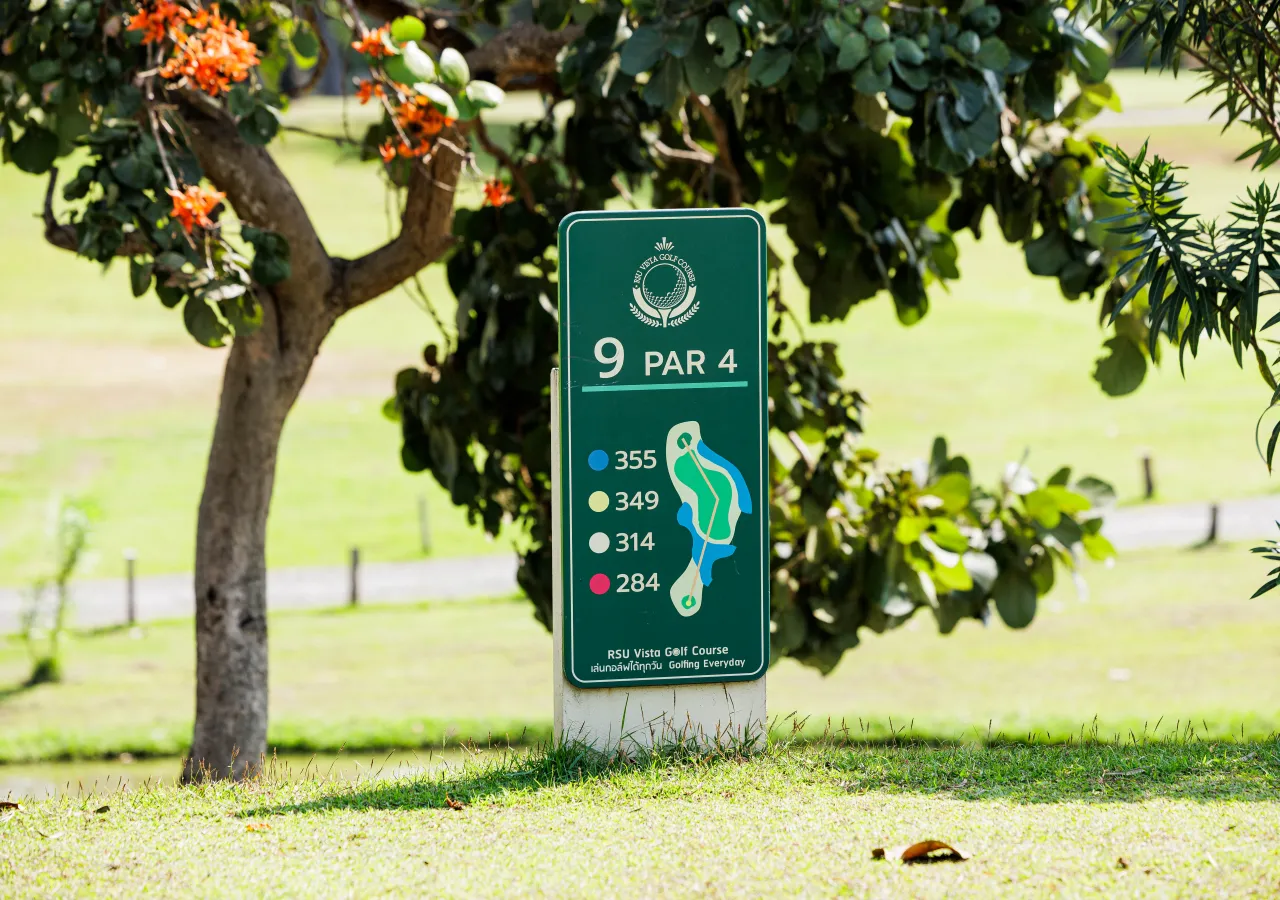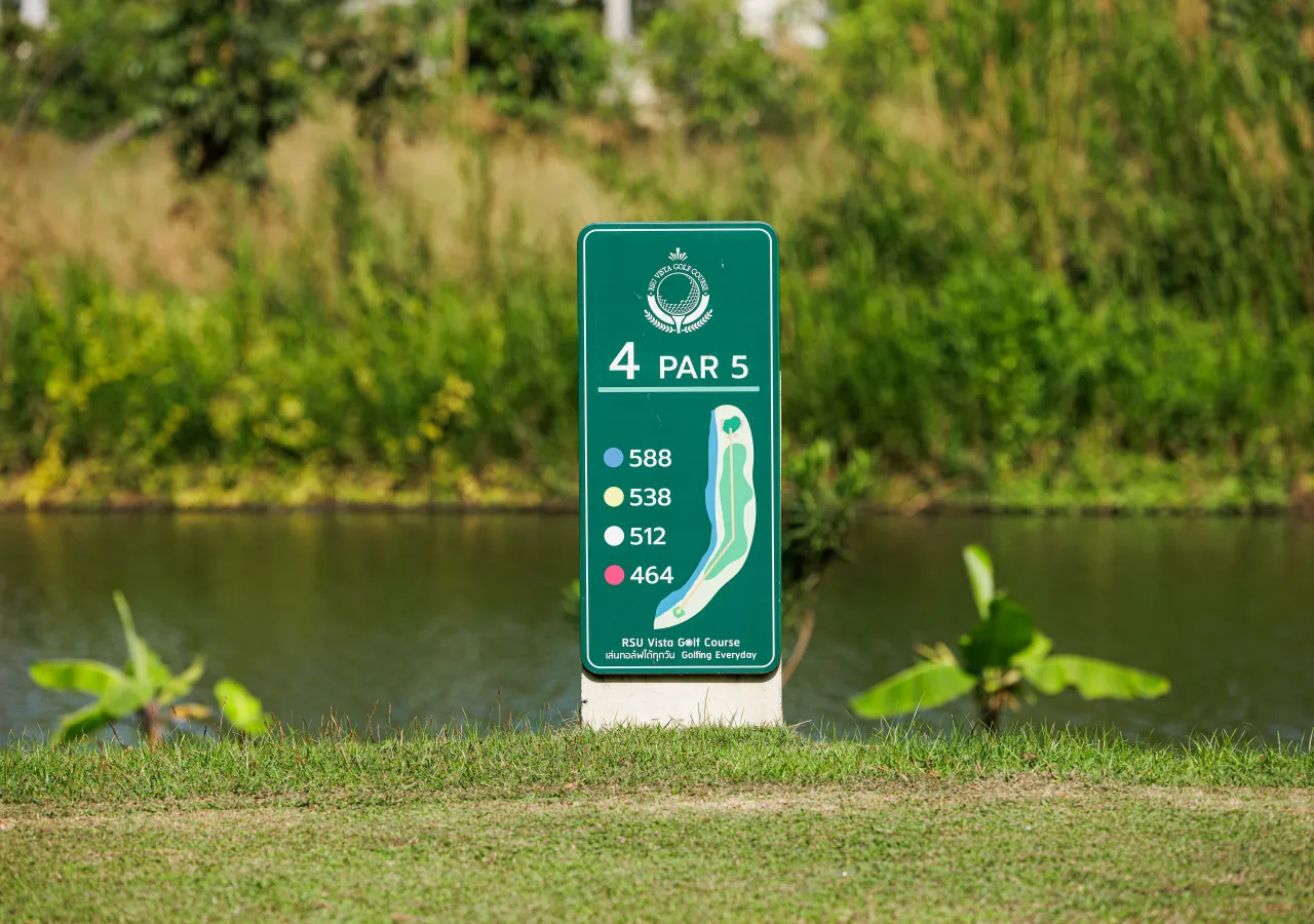 งามสง่าด้วยกระเบื้องหลังคาสีเขียวเข้ม โถงกลางโล่ง โปร่ง กว้าง ผสมผสานทั้งความเป็นธรรมชาติและความเรียบง่าย ฝ้าเพดานทันสมัย โปร่งสบายตา ระเบียงชั้นบนของ Clubhouse เน้นเอกลักษณ์ความภูมิฐาน เพิ่มมุมมองได้ 180 องศา ชมความงามสนาม RSU Vista Golf Course กลางทะเลสาบได้อย่างรอบด้าน