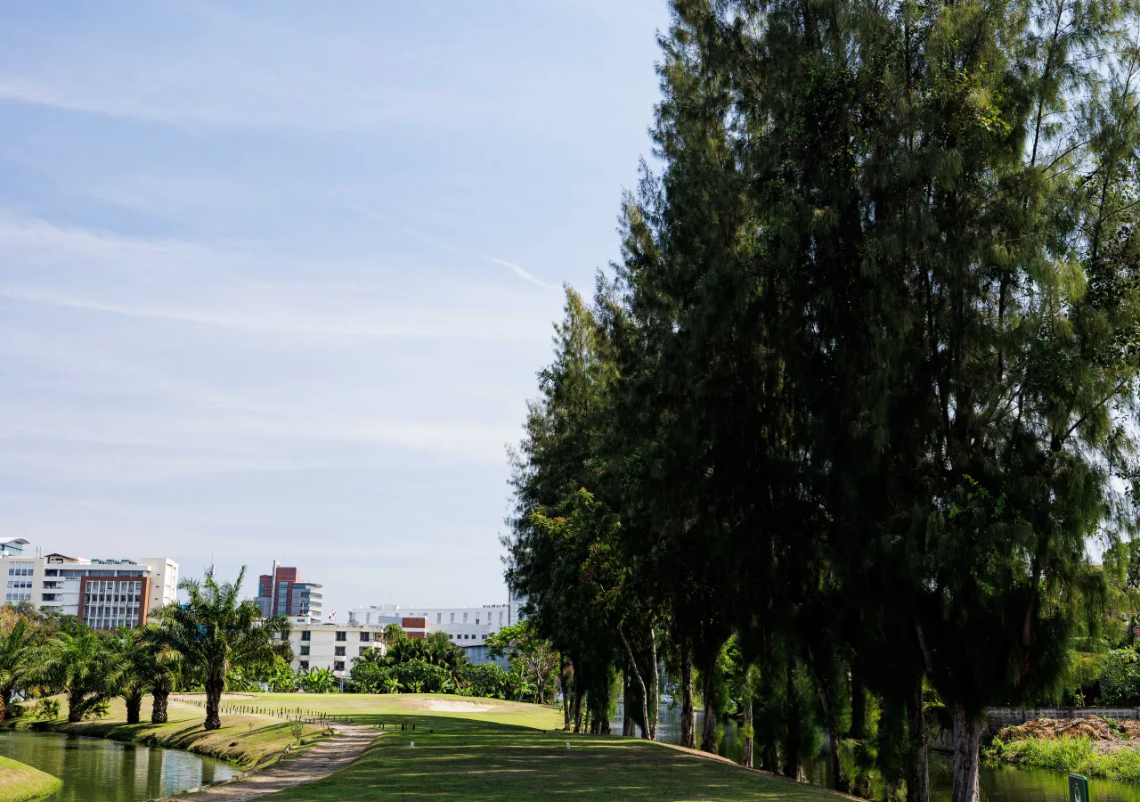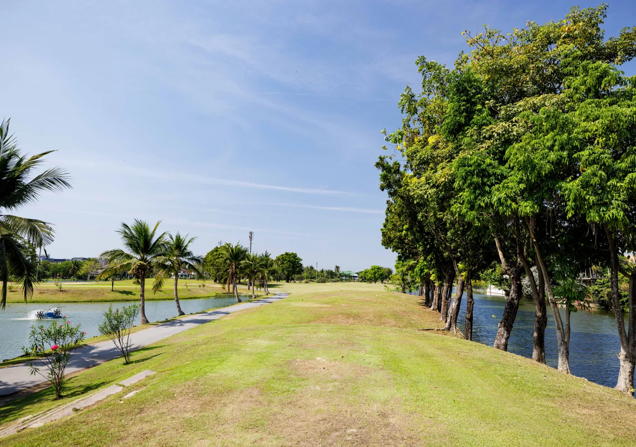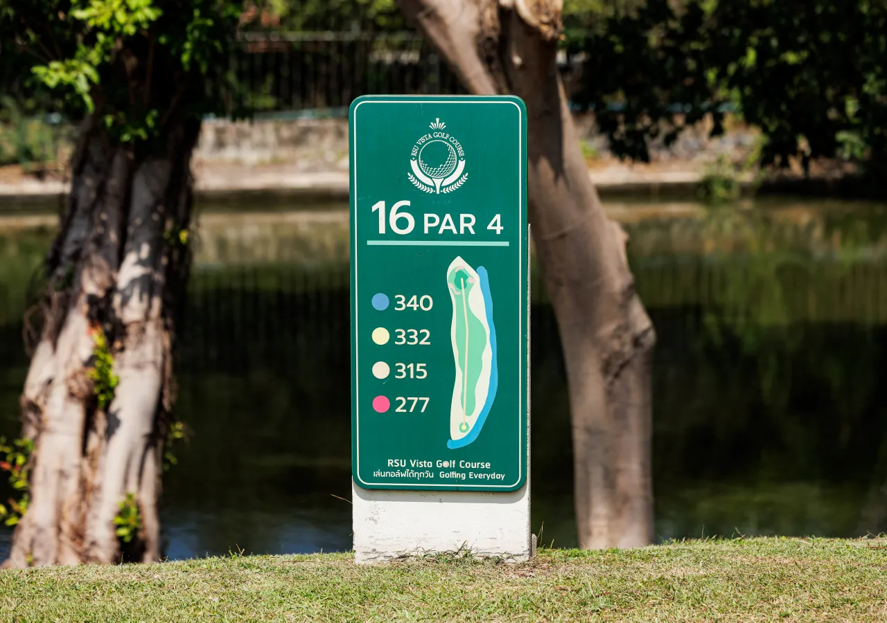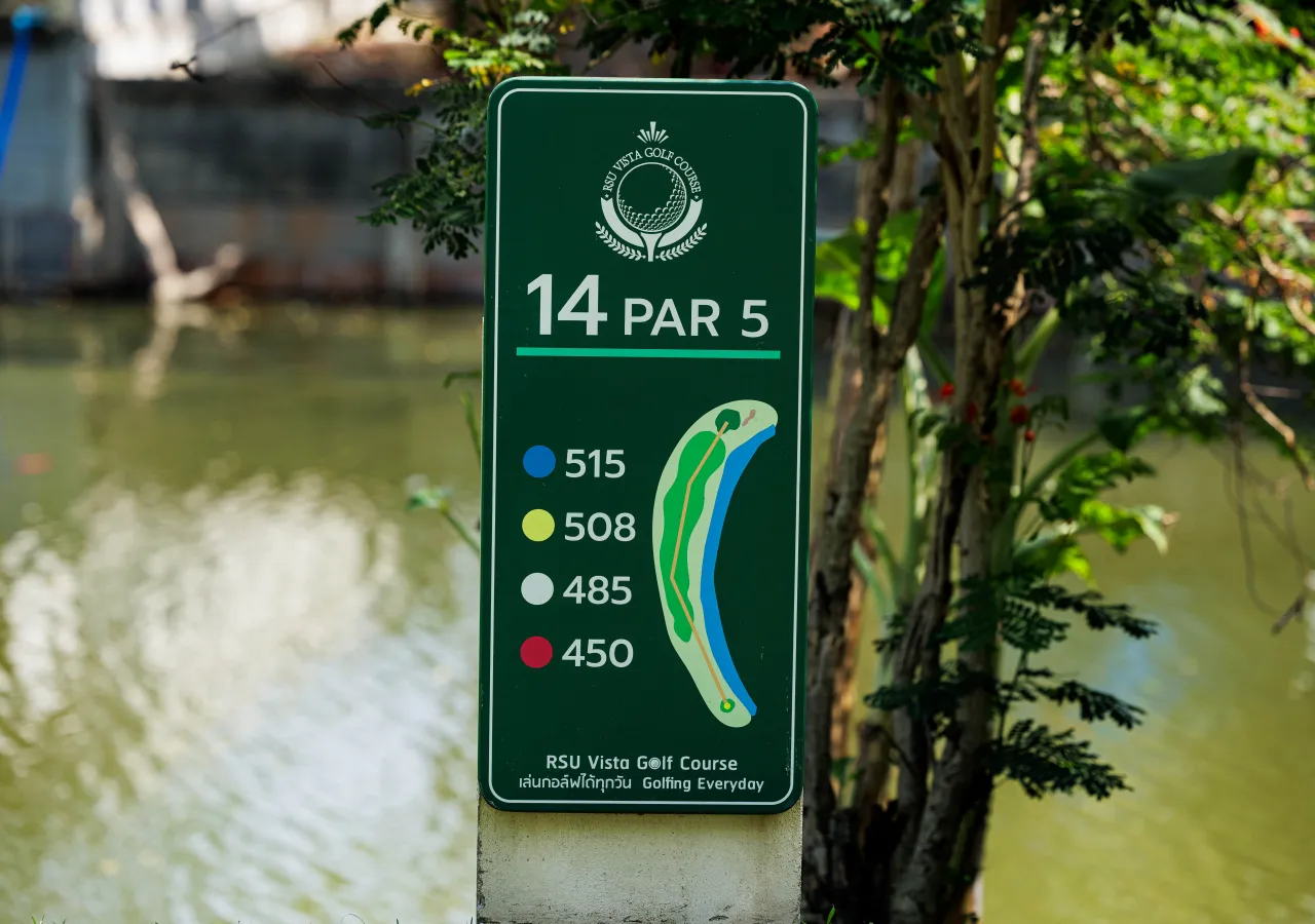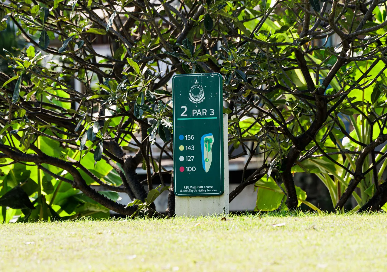 งามสง่าด้วยกระเบื้องหลังคาสีเขียวเข้ม โถงกลางโล่ง โปร่ง กว้าง ผสมผสานทั้งความเป็นธรรมชาติและความเรียบง่าย ฝ้าเพดานทันสมัย โปร่งสบายตา ระเบียงชั้นบนของ Clubhouse เน้นเอกลักษณ์ความภูมิฐาน เพิ่มมุมมองได้ 180 องศา ชมความงามสนาม RSU Vista Golf Course กลางทะเลสาบได้อย่างรอบด้าน