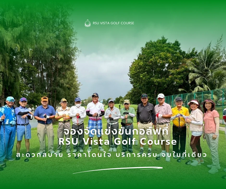 - สนามกอล์ฟ RSU Vista Golf Course มีรูปแบบการจัดการแข่งขันให้เลือกหลากหลาย เช่น การจองเป็นกลุ่ม ตั้งแต่ 30, 50, 70 คน หรือมากกว่านั้น